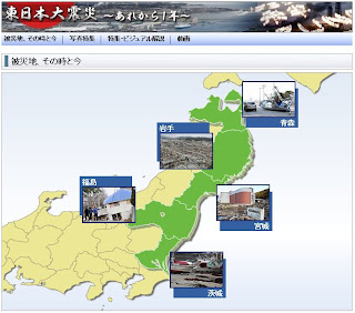 時事通信社が『東日本大震災~あれから1年~』と題して、津波直後の各街の姿と1年後の姿を写真で比較している。