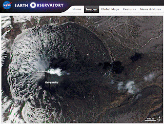 これは、活動度が低くても出る水蒸気の噴煙を人工衛星が捕らえた写真である。
