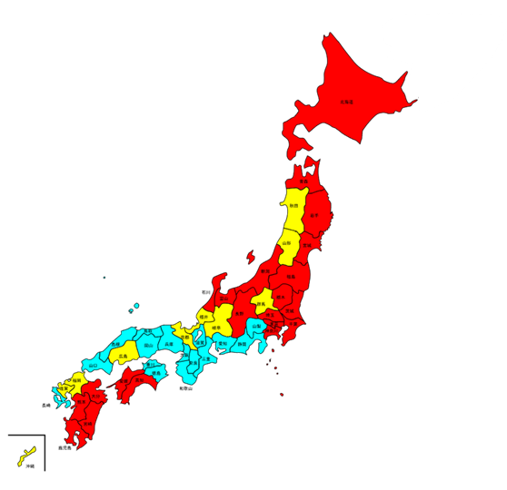神奈川,高知,長野,福井,岐阜,秋田,山形,群馬,京都,広島,福岡,佐賀,沖縄,山梨,静岡,愛知,三重,滋賀,大阪,兵庫,奈良,和歌山,鳥取,山口,長崎,島根,岡山,香川,徳島