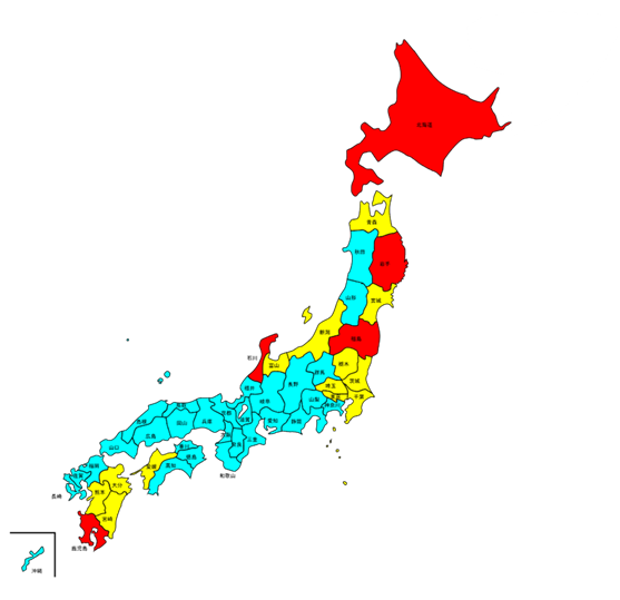 福井,岐阜,秋田,山形,群馬,京都,広島,福岡,佐賀,沖縄